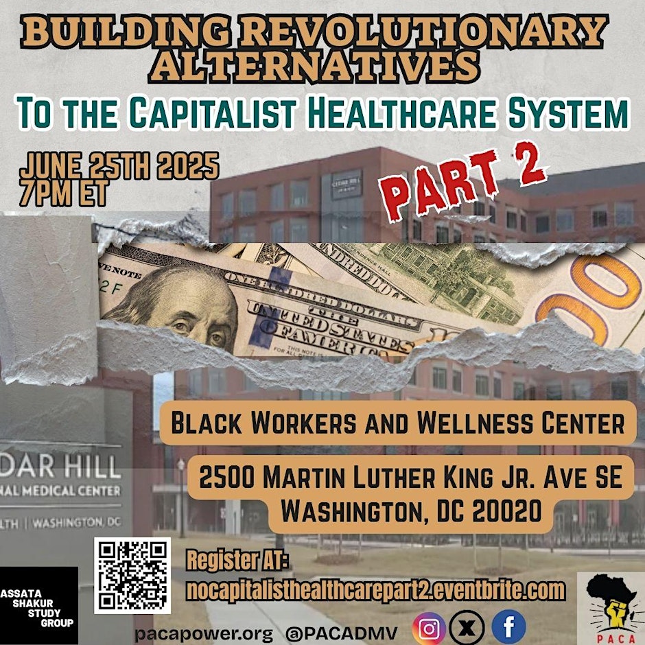 Join Pan-African Community Action (PACA) for Part 2 of our Assata Shakur Study Groupseries, where we’ll explore how capitalist healthcare harms the Black working class, examine global models that put people over profit, and strategize toward building independent systems of community control and collective care.